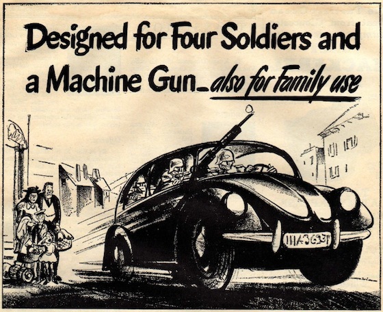 This comes from Norman O. Mustill’s “raw data” pile. It appeared during World War II in an ad for Good Housekeeping Magazine, warning against “A Dictator’s Newest Dream.” According to the text that accompanied the ad, “The army has specified that it must be able to carry 4 soldiers with full equipment or a machinegun […]