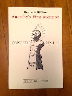 !['Anarchy's First Mention' [Cold Turkey Press, 2016] by Heathcote Williams (in his handwriting) 'Anarchy's First Mention' [Cold Turkey Press, 2016] by Heathcote Williams (in his handwriting) 'Anarchy is first mentioned by Erasmus / In a collection of proverbs in 1539, / where he speaks of a 'liberty of the multitude' / and idea that to many sounded fine. / Four centuries later an anarchist army / Would defeat Franco's fascist militia. / A Barcelona veteran said, 'Anarchismo e amore. That was how we helped build utopia.'](http://www.artsjournal.com/herman/wp/wp-content/uploads/2016/11/Anarchy-middle-benh750.jpg)