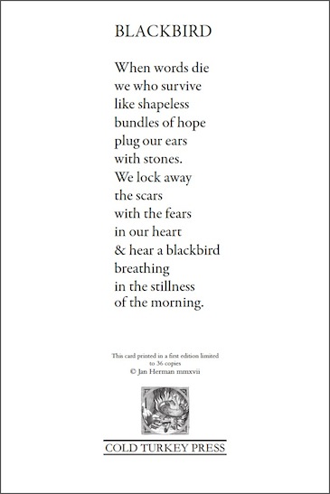 Beautiful layout of a meaningful poem. Gerard Bellaart has such impeccable taste in every situation.
