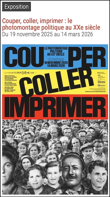 Cut, paste print: a graphic history of political photomontage (1917-1991) opened recently at La Contemporaine, a public institution associated with Paris Nanterre University. As the title declares,“the exhibition presents an international panorama of the history of photomontage, spanning the 20th century, and its close link to political history and the history of graphic forms.” It is curated by Aline Théret, librarian, and Max Bonhomme, lecturer in design and visual culture at Strasbourg University, and a specialist in the political use of photomontage. The exhibition is free and open to the public. It will run until March 14, 2026.
