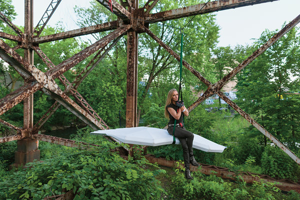 In 2003, when she was teaching in the engineering department at Yale, she collaborated with high-school students in the Bronx to install chemical sensors in toy robot dogs, setting the pack loose near an old Con Edison plant close to the Bronx River to sniff out underground pollutants. “I’m interested in creating spectacles,” she says.